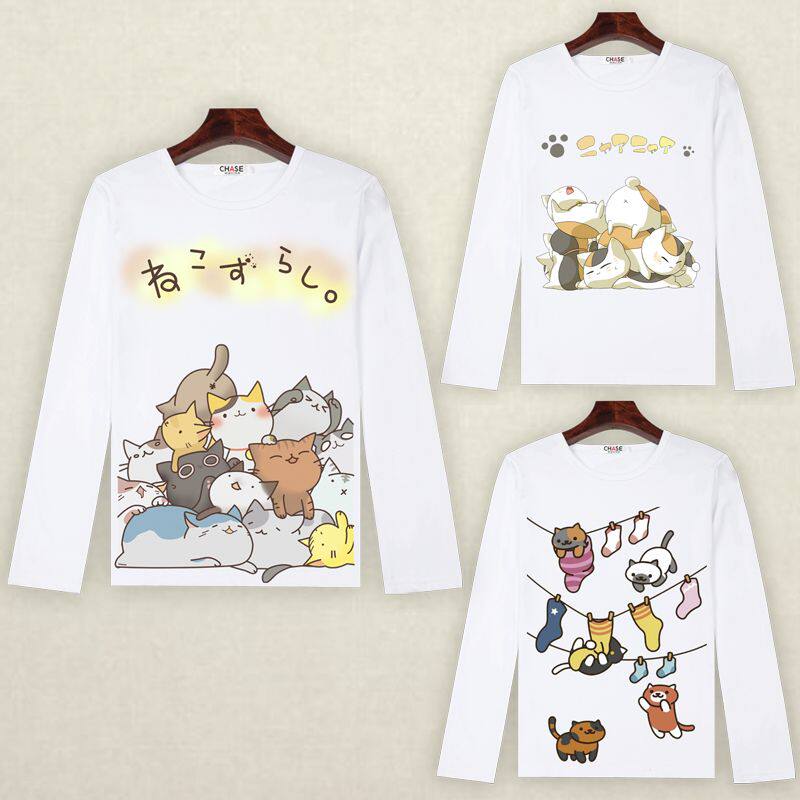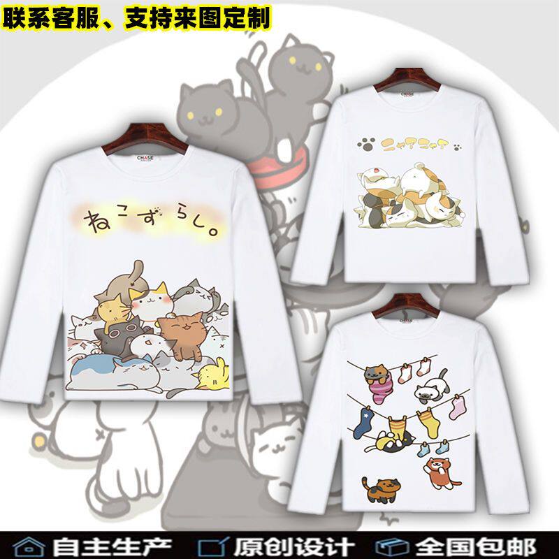 猫咪后院长袖T恤可爱喵咪动漫周边衣服 二次元男女宽松上衣春秋季