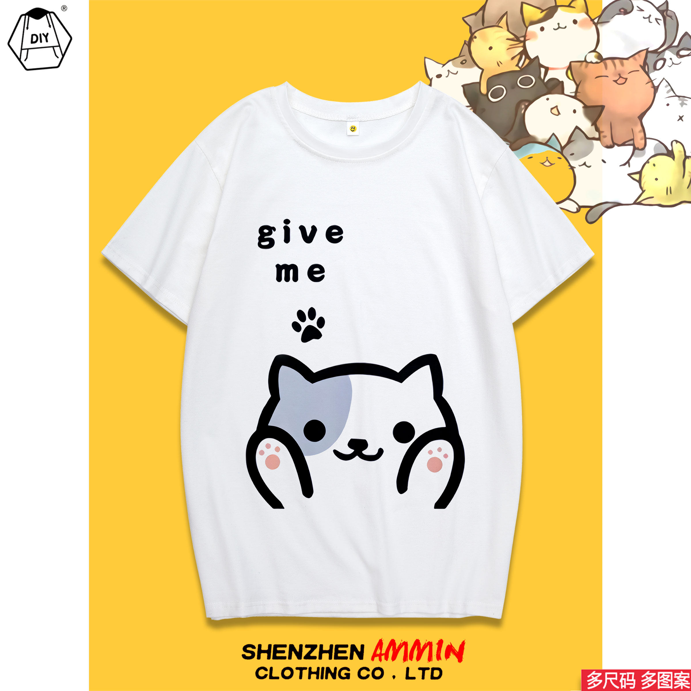 猫咪后院可爱萌猫咪卡通短袖T恤男女游戏周边INS上衣0010设 无界