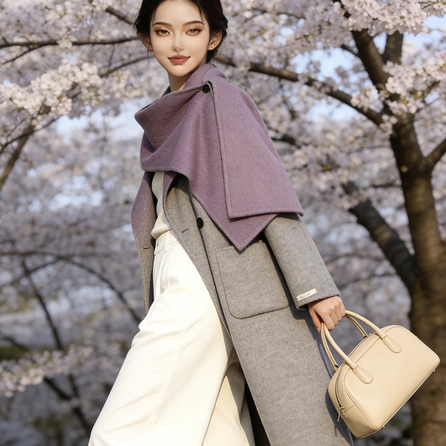 双面呢羊绒大衣女中长款2025秋冬新款围巾设计牛角扣加厚毛呢外套
