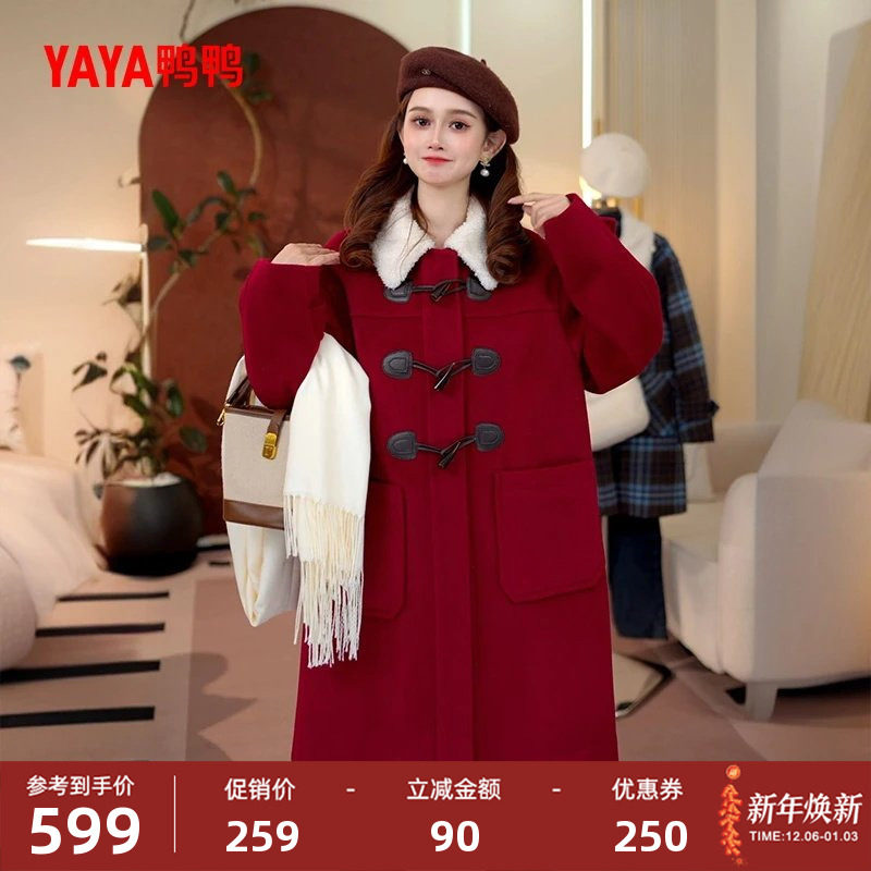鸭鸭羽绒服女2025年秋冬新款加厚保暖中长款时尚休闲毛呢大衣外套