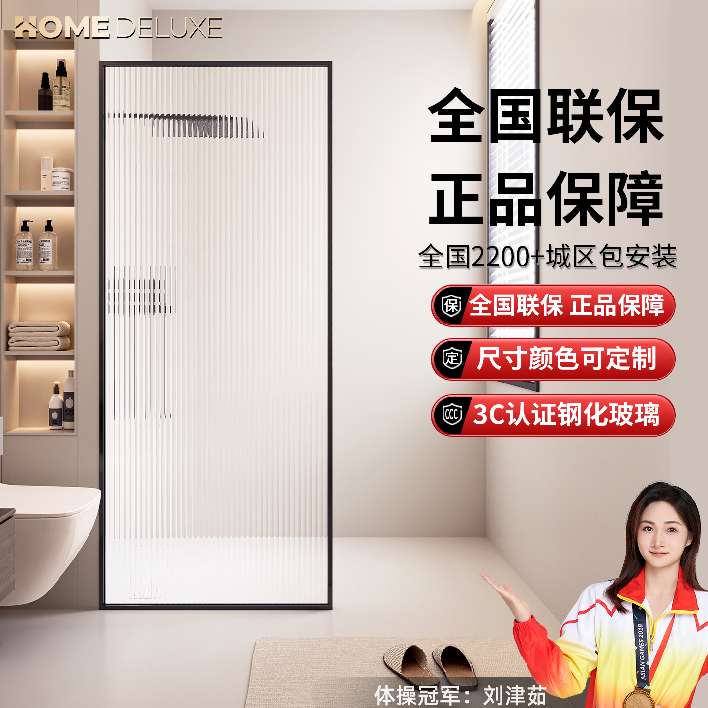 浴室半隔断玻璃门极窄淋浴房浴屏卫生间干湿分离淋浴间洗澡房屏风
