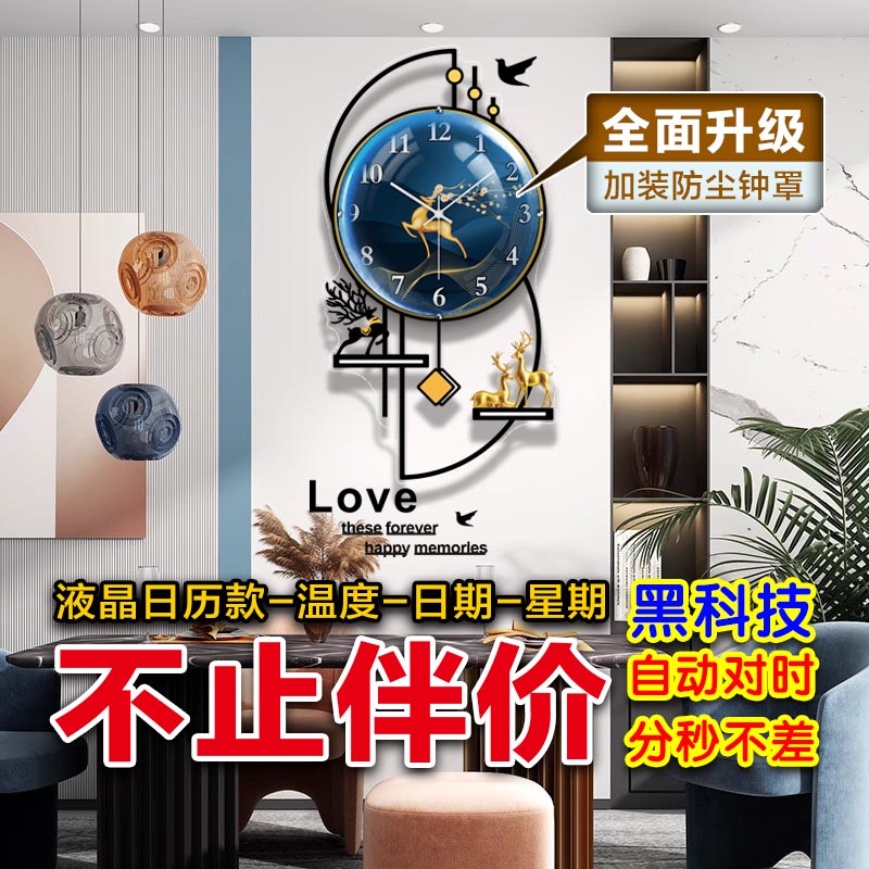 2025新款钟表挂钟客厅装饰画日历电子钟家用时尚餐厅万年历时钟