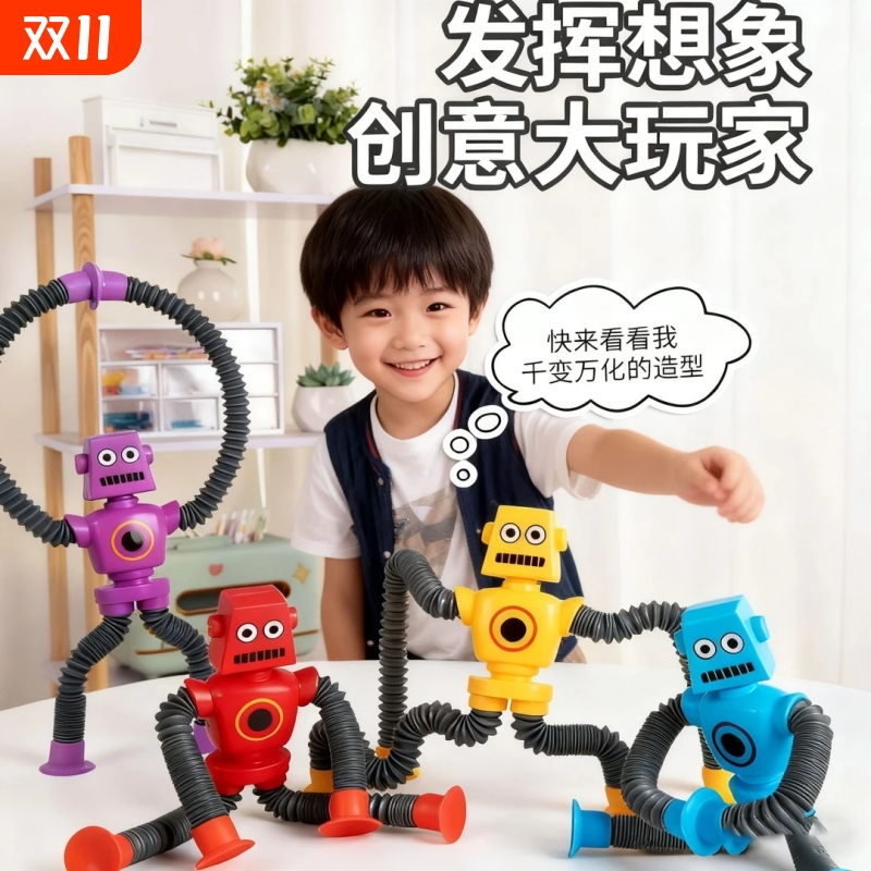 机器人伸缩吸盘卡通百变发光解压神器3到6岁专注力坐飞机必备玩具