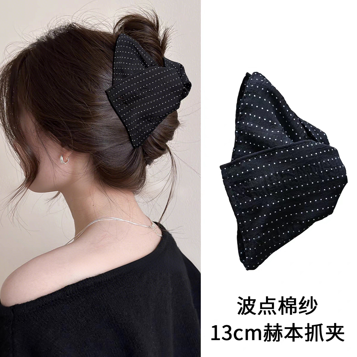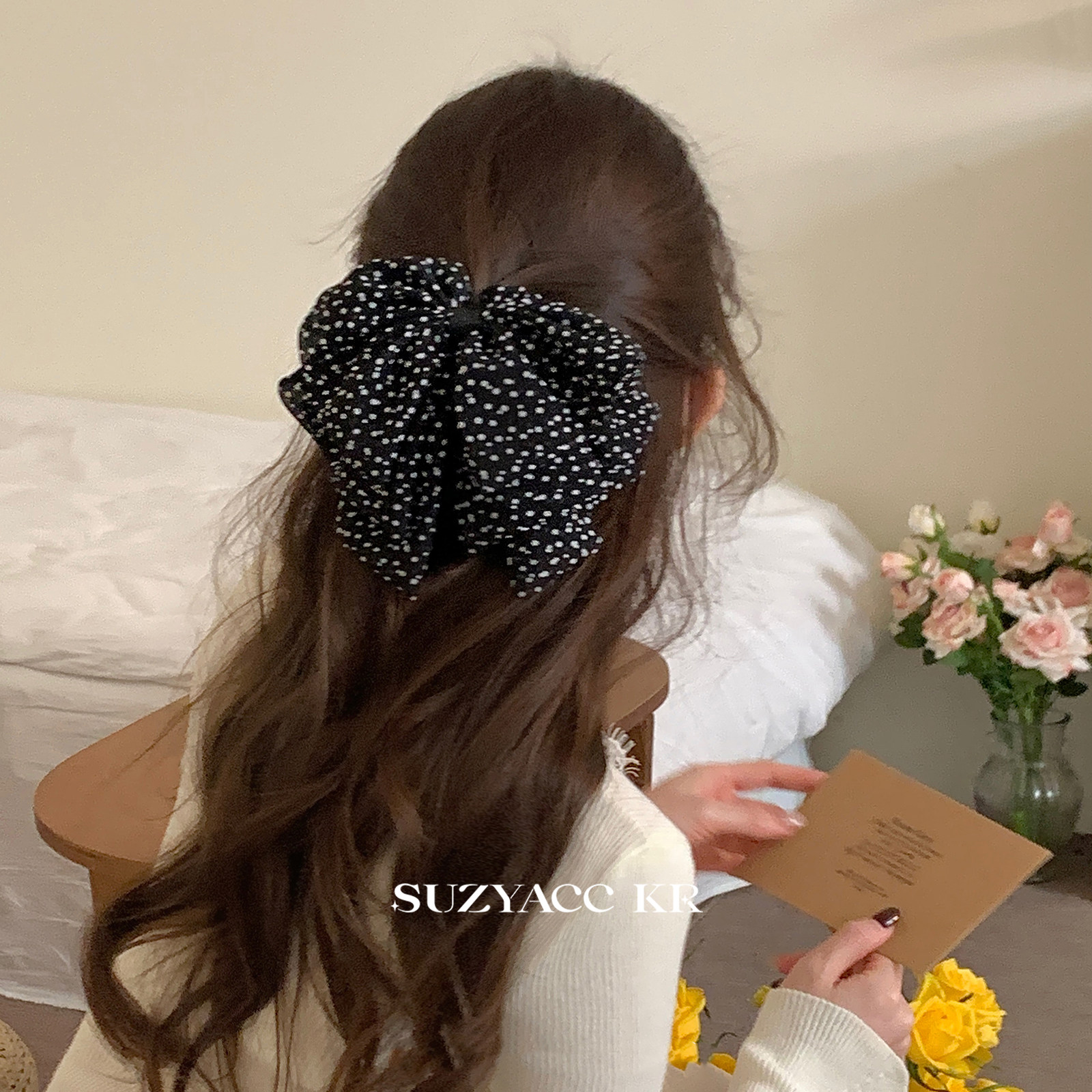suzyacc kr氛围感波点雪纺蝴蝶结发夹女2025新款后脑勺盘发抓夹