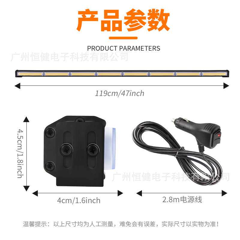 118cm汽车爆闪灯COB杠灯杆中网led车灯工程车警示灯信号灯频闪灯