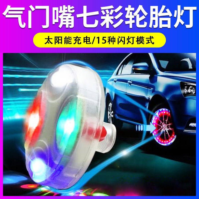 太阳能汽车爆闪灯七彩爆闪夜光发光电动摩托气门灯改装车载氛围灯