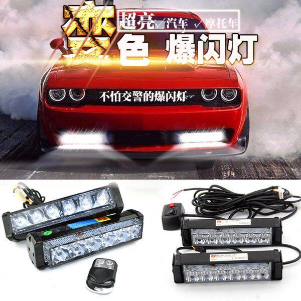 汽车爆闪灯开道超亮大功率中网改装爆闪灯遥控三色变光警示灯12V