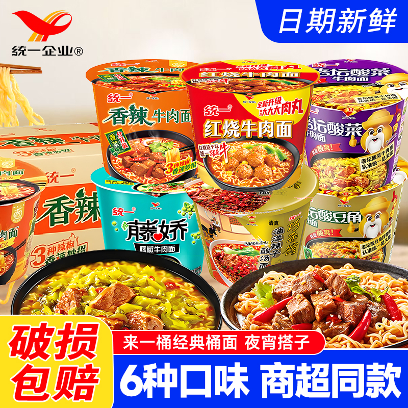 统一方便面整箱12桶老坛酸菜牛肉面桶面重庆小面泡面整箱速食食品