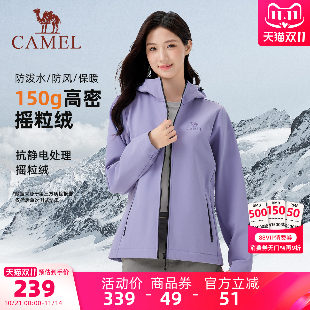 骆驼女装软壳衣防泼水外套2025春秋新款防风加绒短款连帽休闲外套