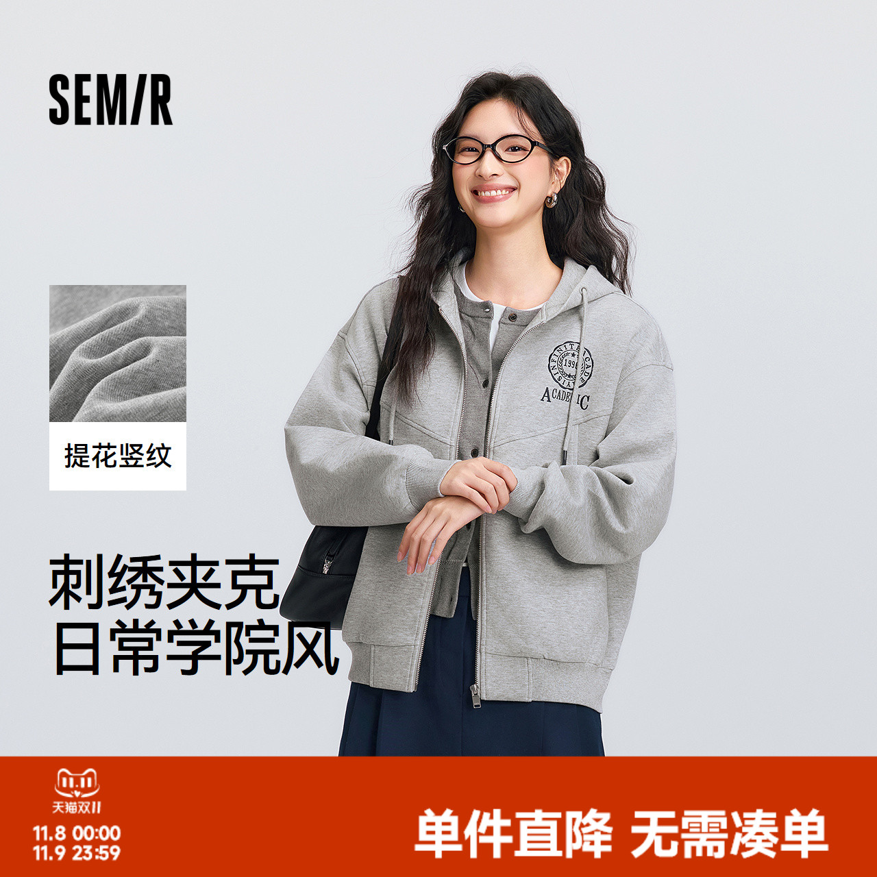 [商场同款]森马外套女刺绣开春女装卫衣2025春秋新款上衣质感夹克