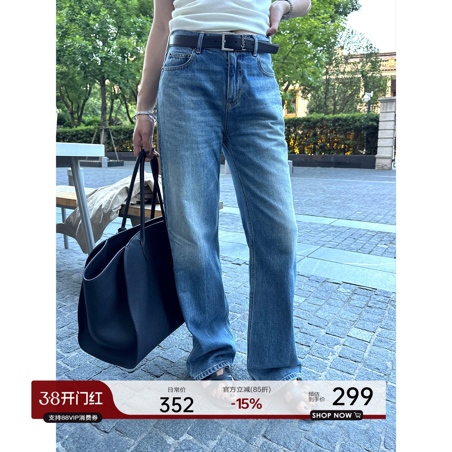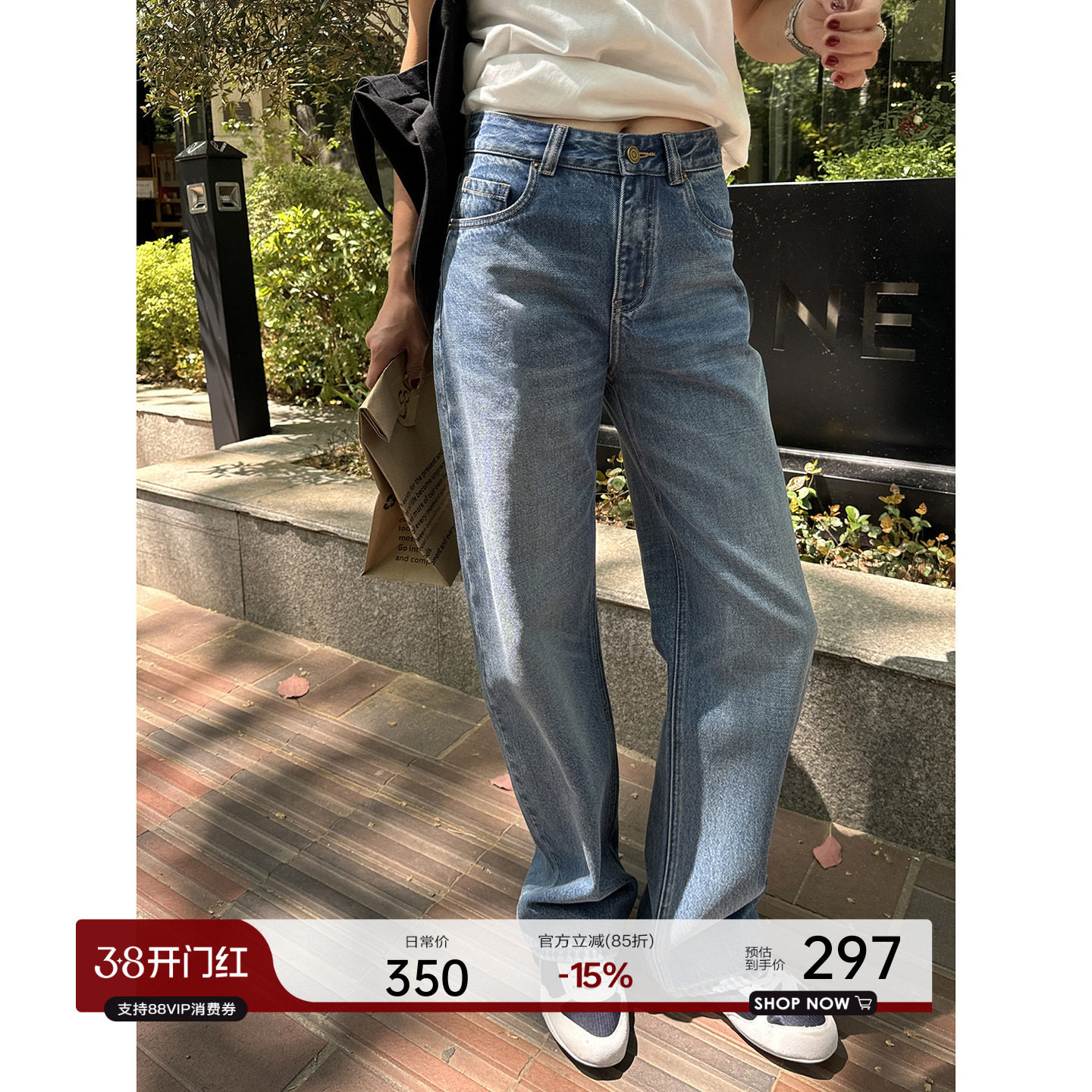 YANGLE_牛仔裤女2025年秋季新款复古水洗高腰直筒宽松浅色拖地裤