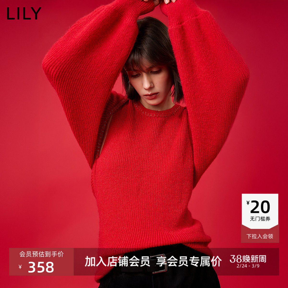 LILY冬新款女装小香风新年氛围感大红色两件套针织衫开衫背心