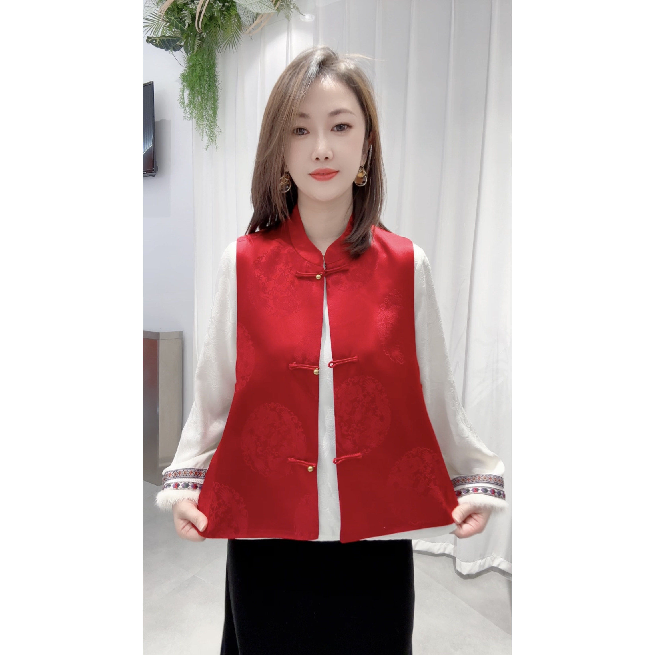 新中式宴会款大红色喜庆短款马甲2026春季新中式本命年女马夹坎肩