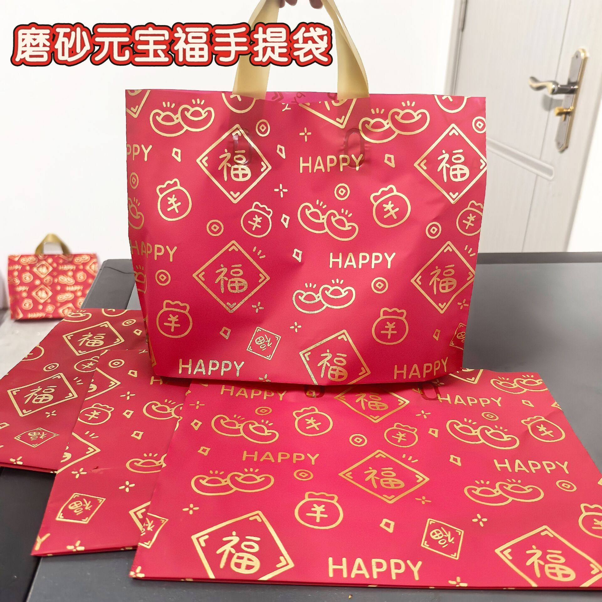 大红色新年购物袋2026磨砂元宝福袋男装女装童装服装店袋子礼品袋