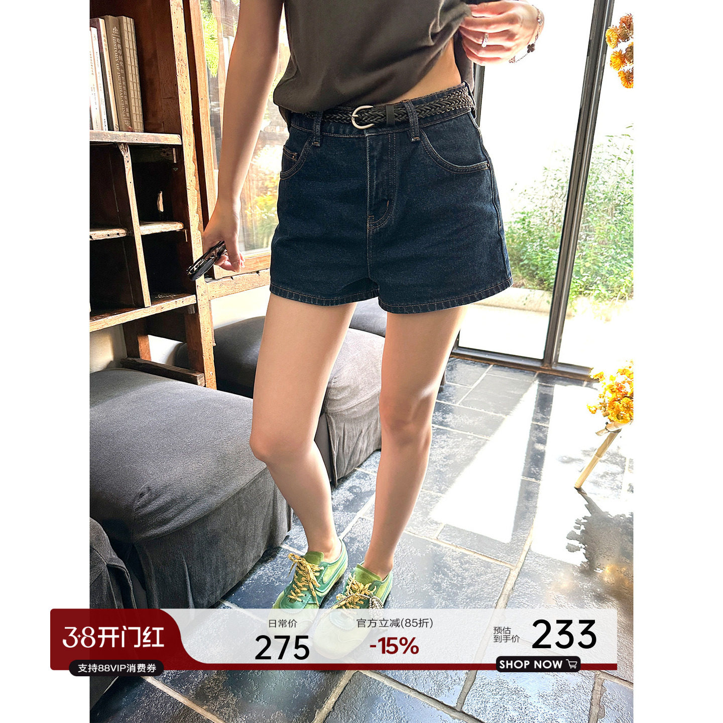 YANGLE_阔腿牛仔短裤女2025新款夏薄款高腰宽松复古深蓝色直筒裤