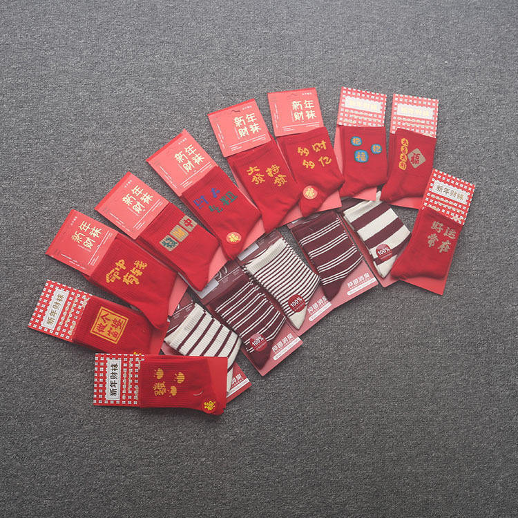 本命年红袜子男女中筒袜春秋款防臭吸汗透气蛇年大红色情侣长筒袜