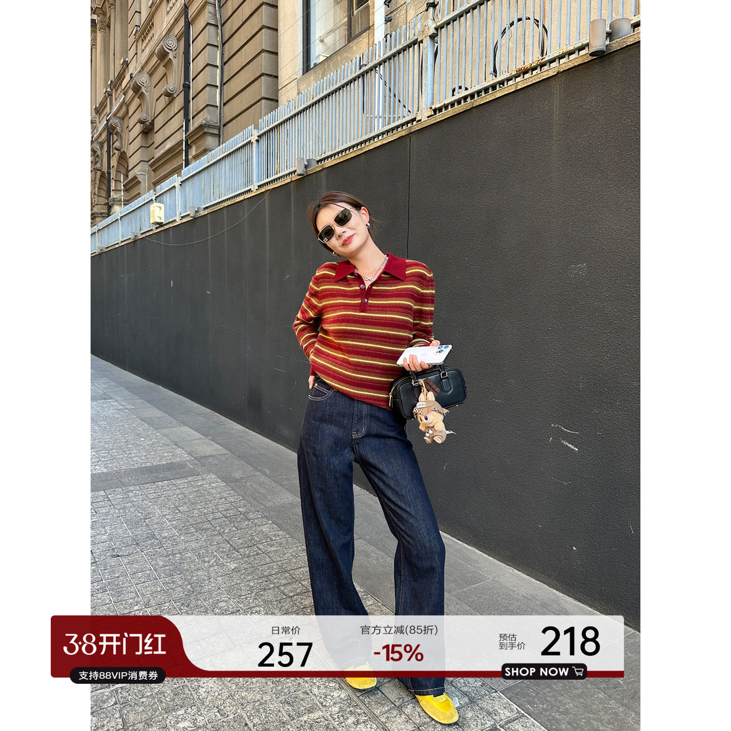YANGLE_牛仔裤女2025新款秋冬抓绒藏青色休闲宽松显瘦窄版直筒裤
