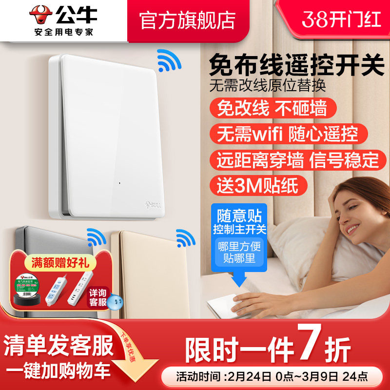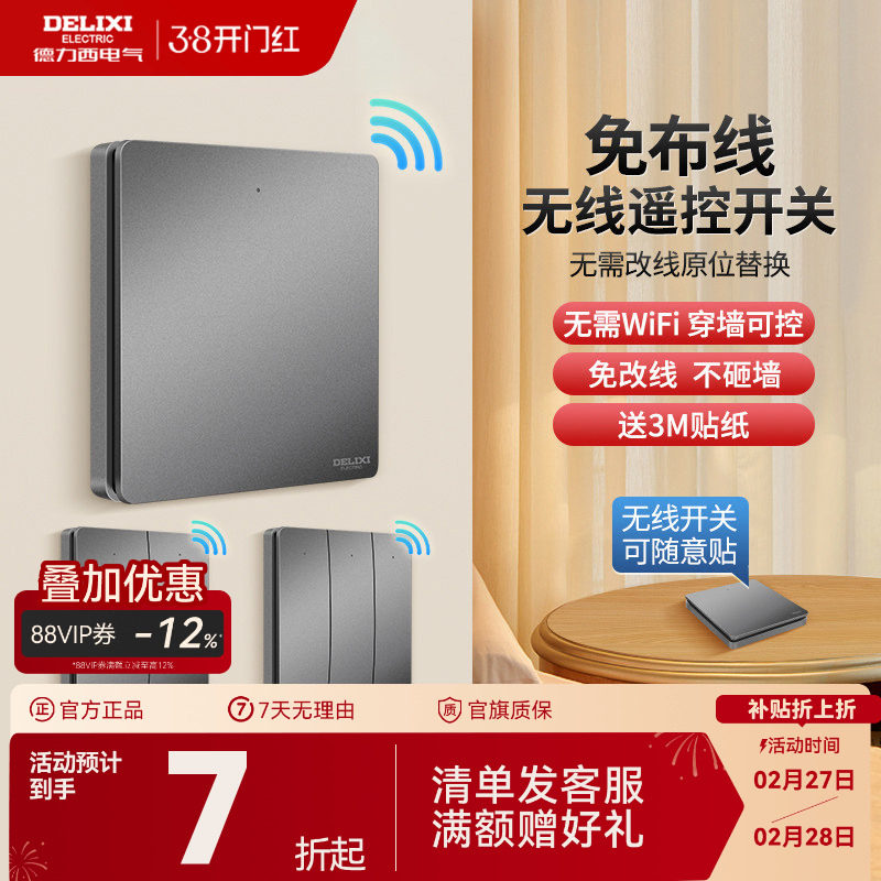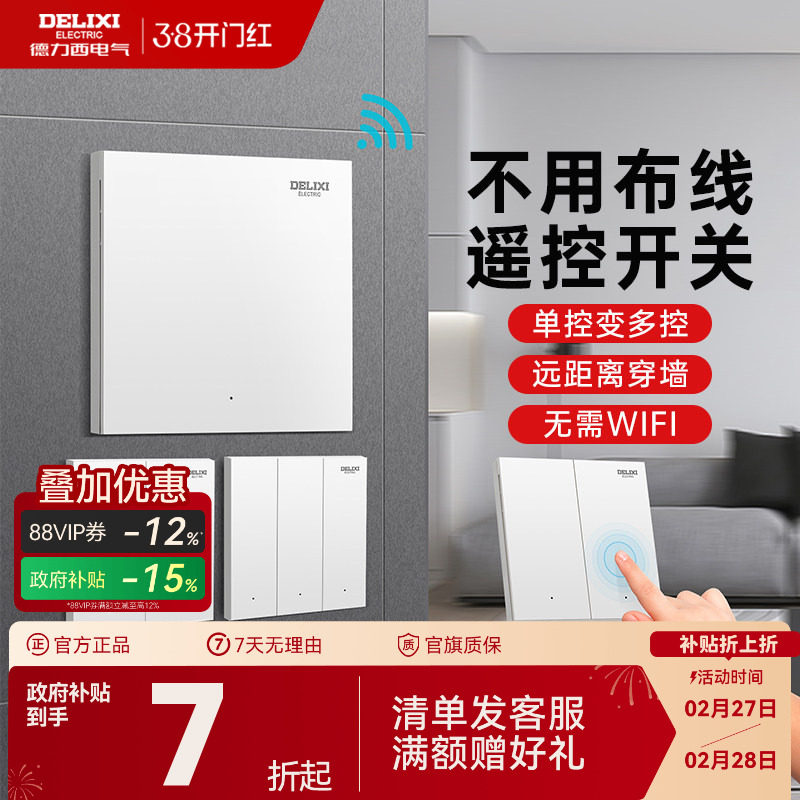 德力西无线遥控开关智能远程控制免布线感应子母开关双控灯随意贴
