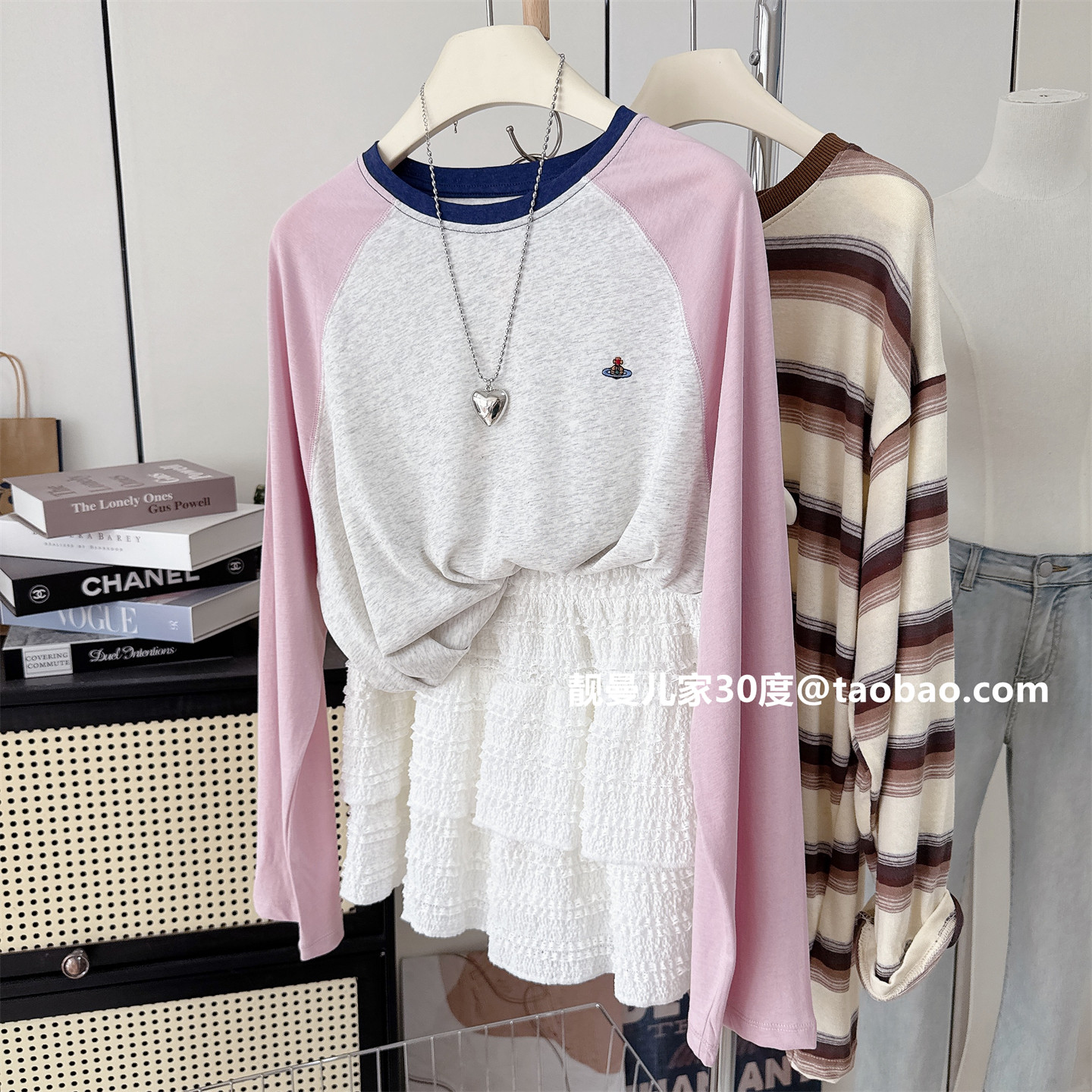 不透的防晒衫~MINI星球刺绣撞色夏款女长袖T恤简约休闲上衣空调衫