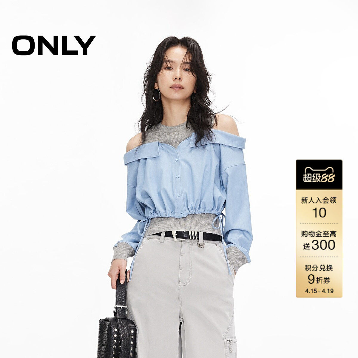 Basic House/百家好假两件抽绳针织衫女春季新款刺绣休闲长袖上衣
