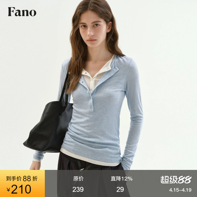 范洛Fano 简约风假两件修身打底衫女2026夏季新款亨利领长袖T恤