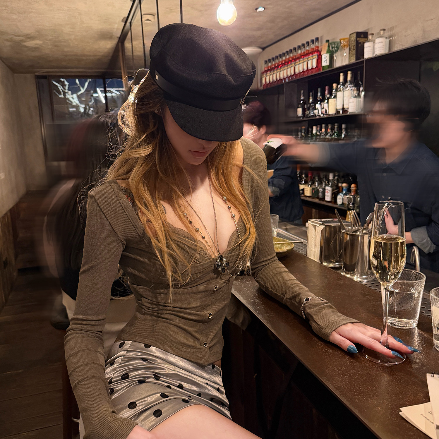 dorydory 显瘦蕾丝打底衫长袖2026新款复古深棕假两件早春上衣女