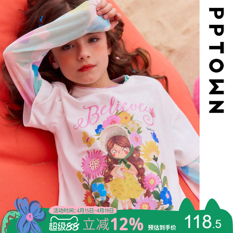 女童长袖T恤2026夏季新款户外休闲旅游拍摄打底衫儿童假两件上衣