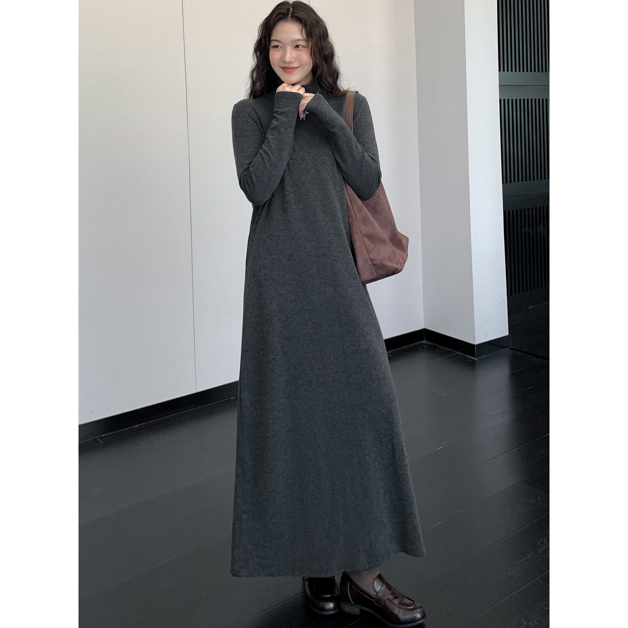秋冬季新款大码女装胖mm宽松显瘦纯色高领直筒高腰长袖打底连衣裙