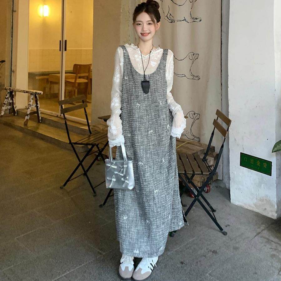 大码针织吊带连衣裙女背心长裙中长款内搭毛衣打底裙宽松胖mm秋冬