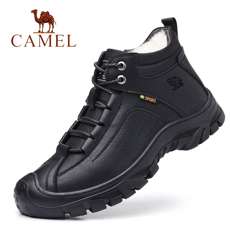 骆驼男鞋冬季2025新款真皮软底休闲鞋防滑加绒保暖棉鞋工装马丁鞋
