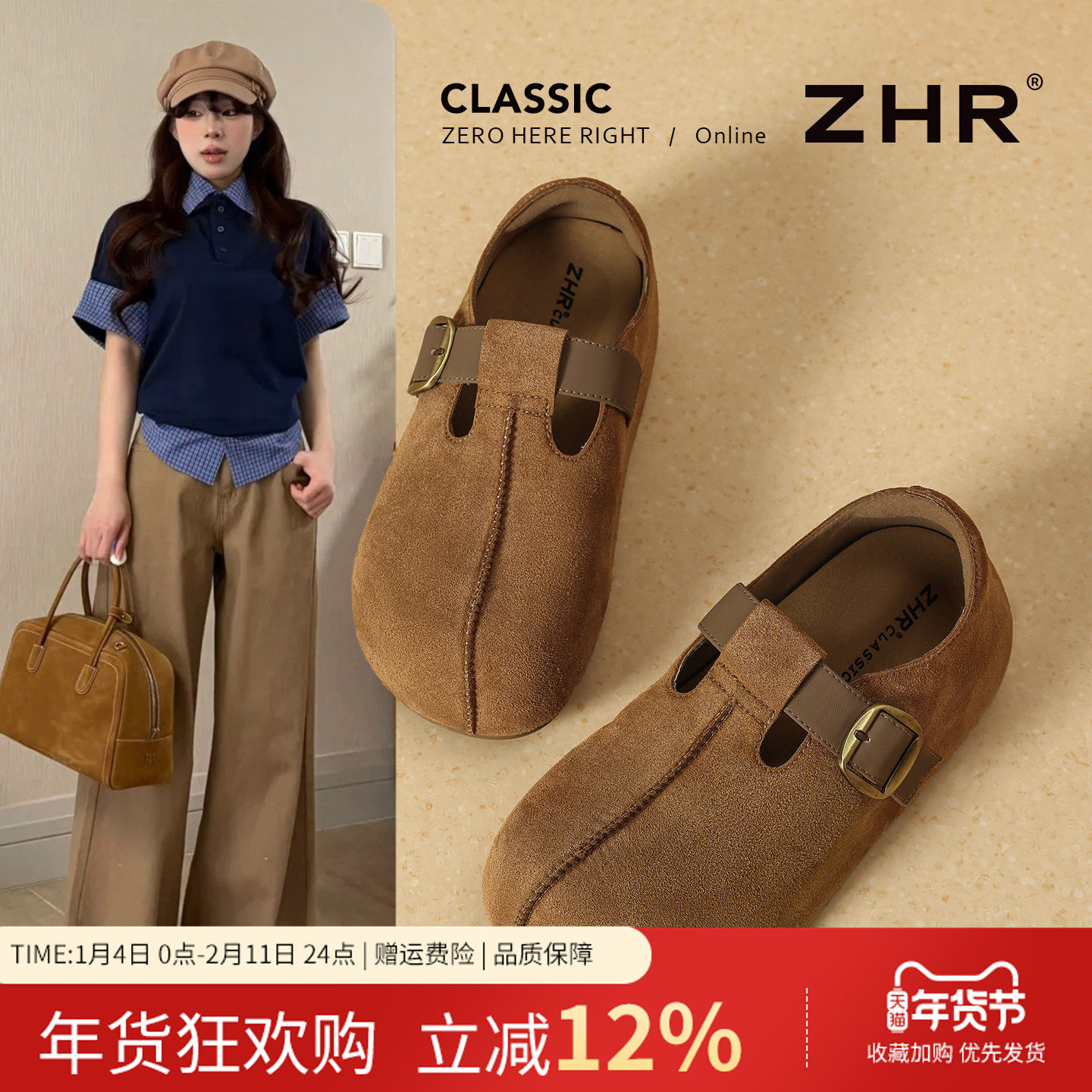 - 复古系带鞋女