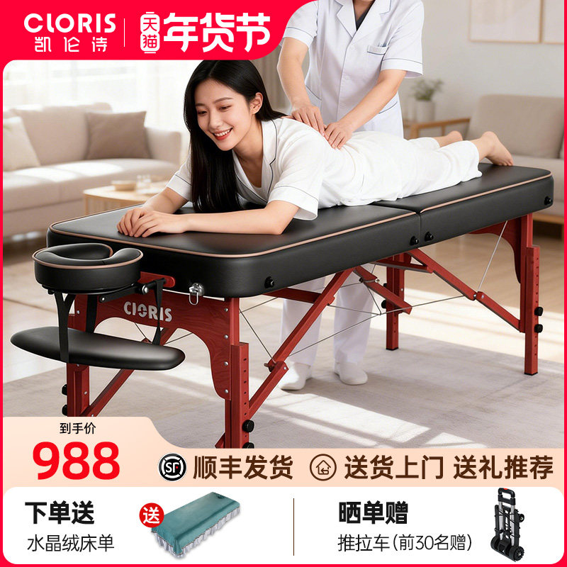 德国凯伦诗折叠按摩床实木美容床手提便携式推拿床家用中医理疗床