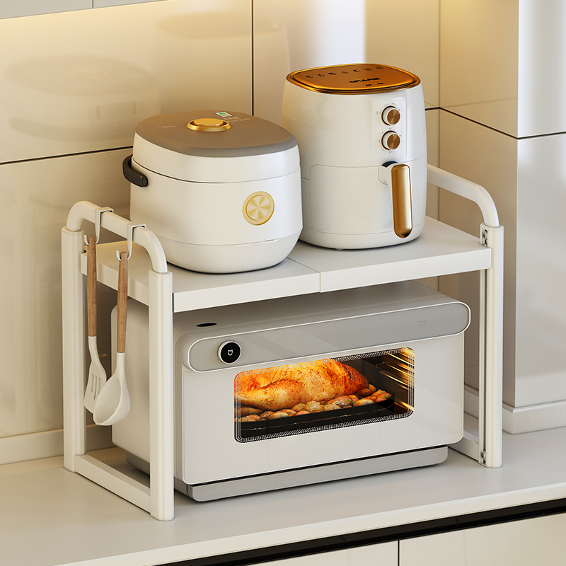可伸缩厨房微波炉置物架高颜值多功能电饭煲一体双层台面烤箱架子