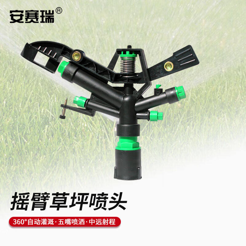 安赛瑞摇臂草坪喷头农用喷水器喷灌喷嘴360度旋转节水喷枪1寸五嘴