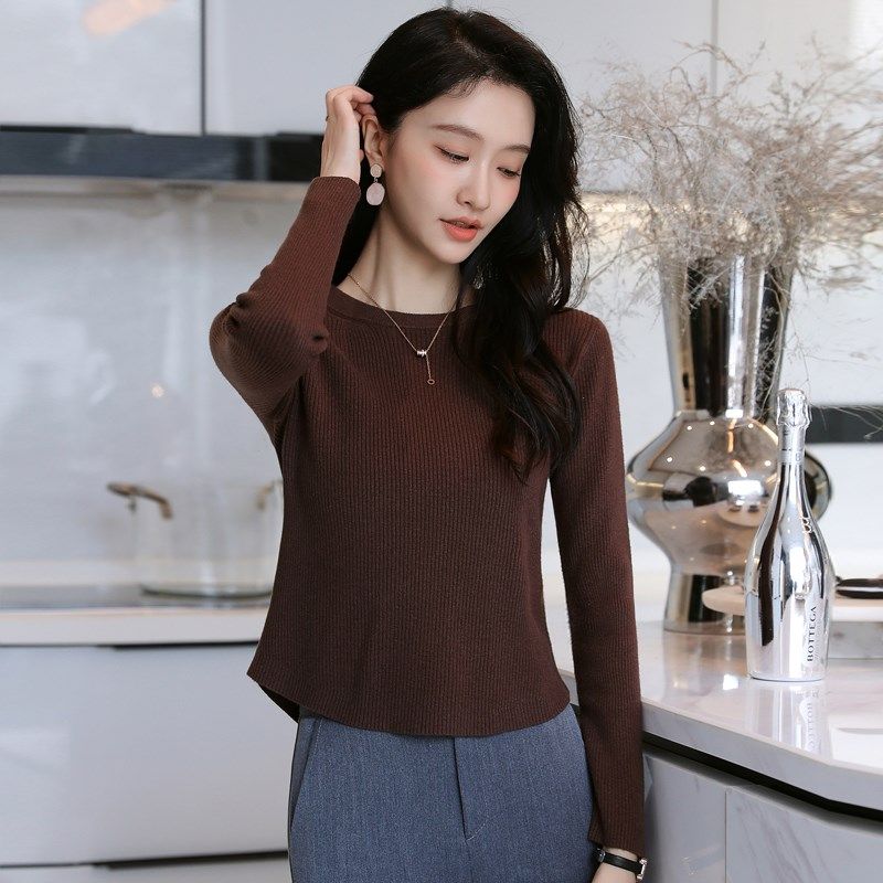 短款套头毛衣女秋冬修身内搭针织打底衫小个子高腰气质上衣高级感