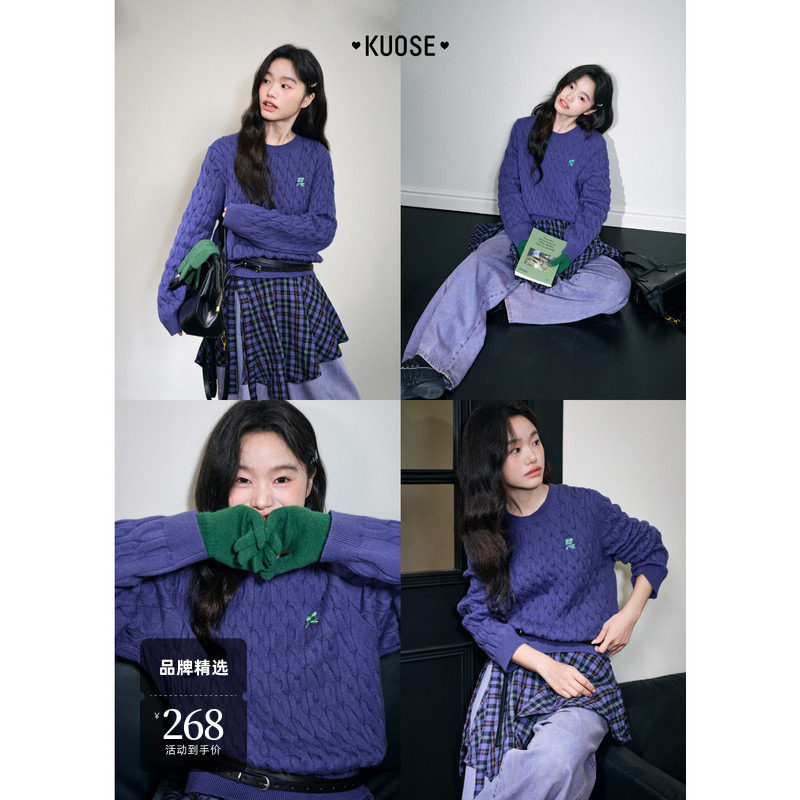 pusumede 慵懒加分项 麻花毛衣针织衫短款收腰内搭圆领套头上衣女
