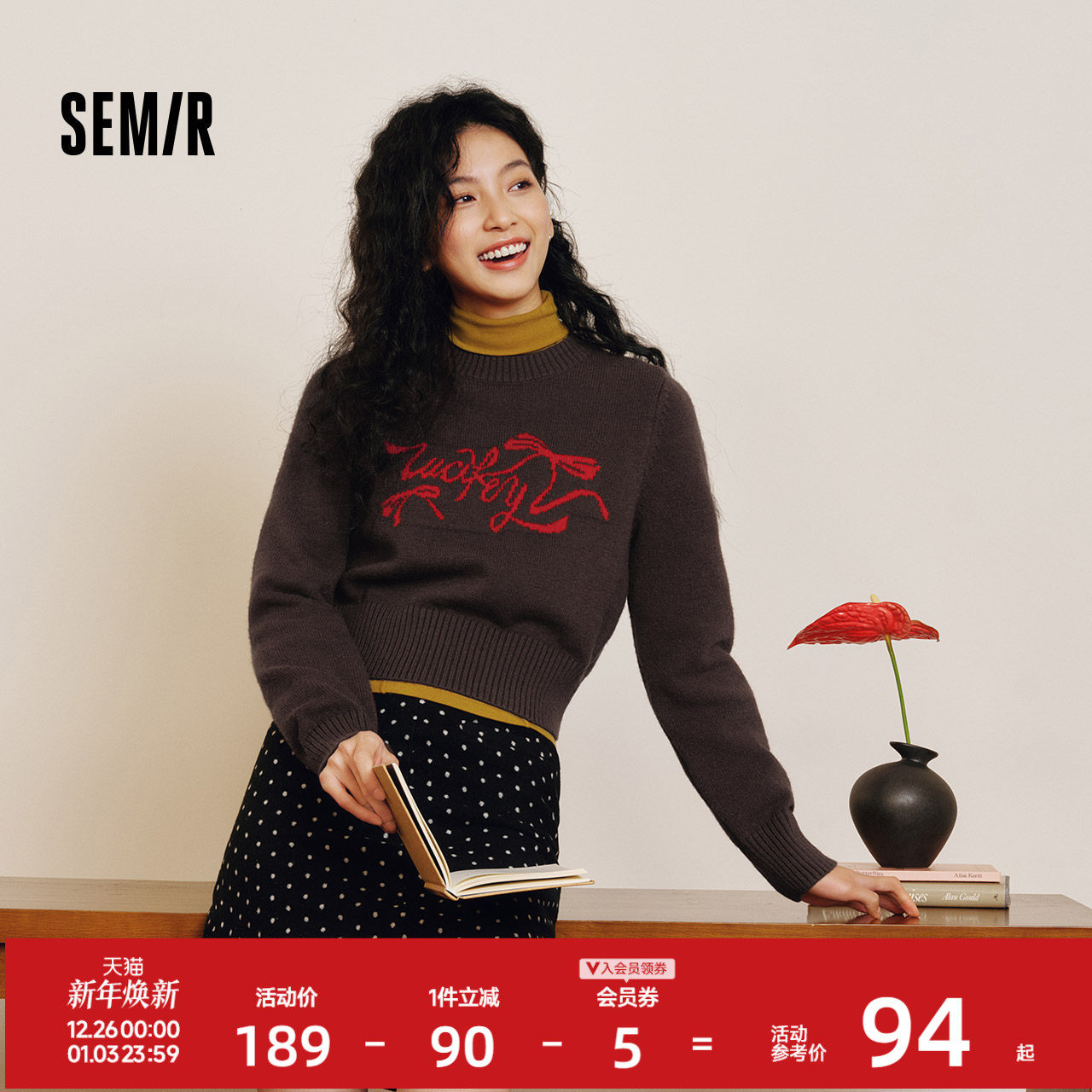 森马毛衣女短款蝴蝶结少女感2025新款春季红色圆领春秋套头衫显瘦