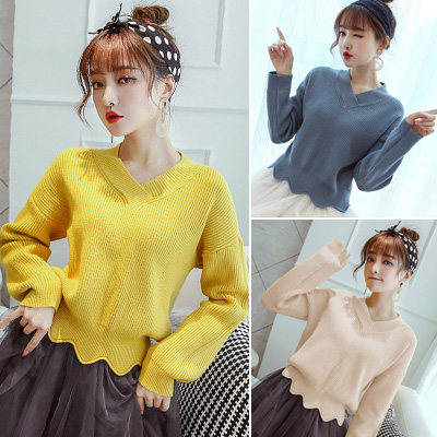 短款套头毛衣女宽松外穿慵懒风 秋冬高腰小个子上衣打底v领针织衫