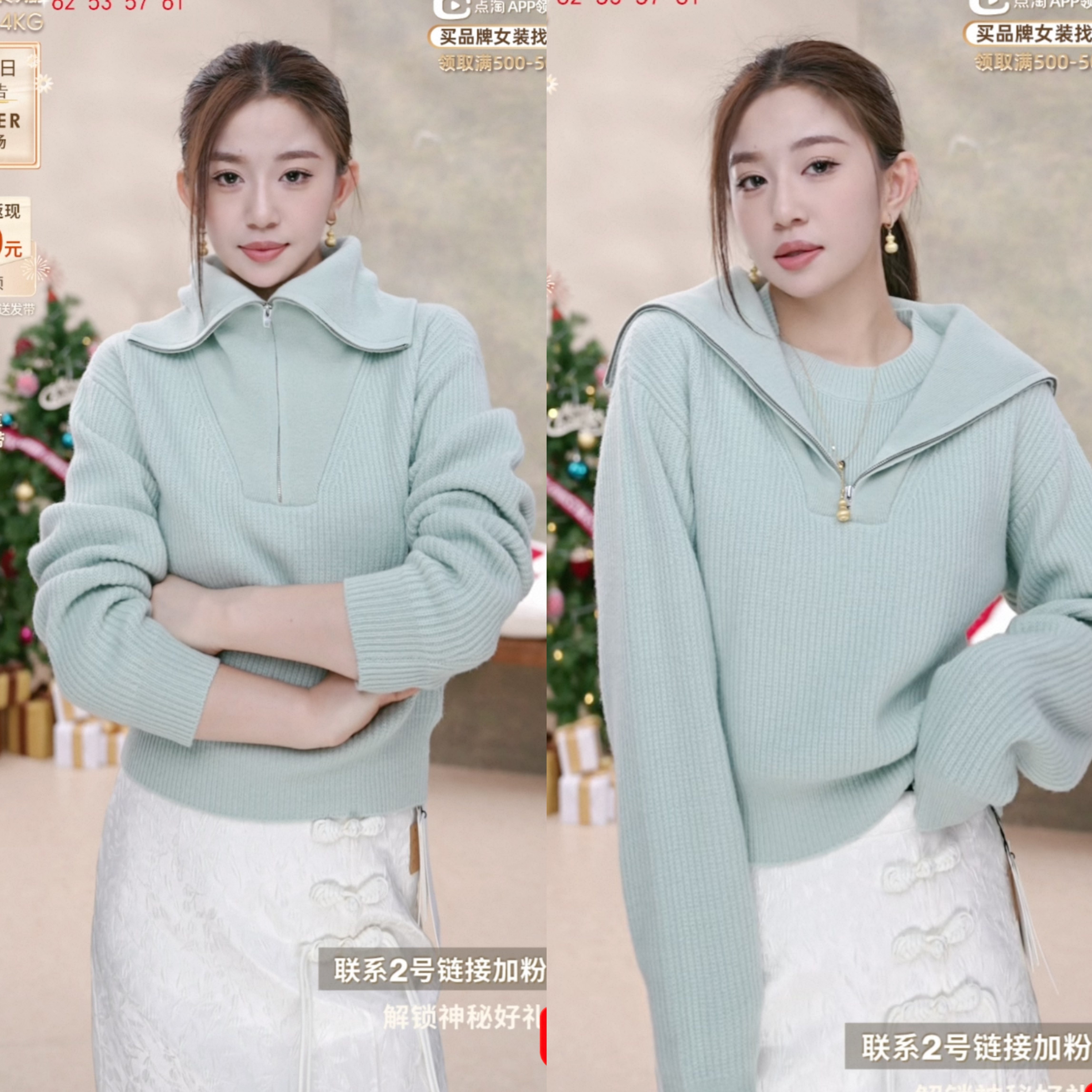 【汤圆TOYO】商场同款 摩萨克冬羊毛双层领假两件短款套头毛衣女