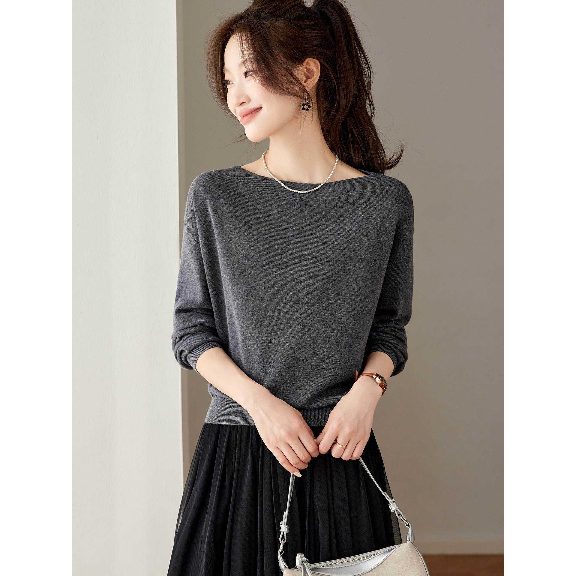 一字领软糯短款套头毛衣女秋冬洋气慵懒风长袖针织打底衫内搭上衣