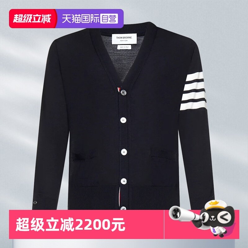 【自营】Thom Browne汤姆布朗针织开衫男款V领羊毛衫白条纹袖标