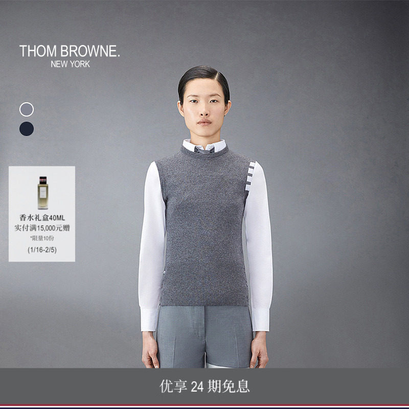 [24期免息]THOM BROWNE 女士四条纹针织圆领背心毛衣