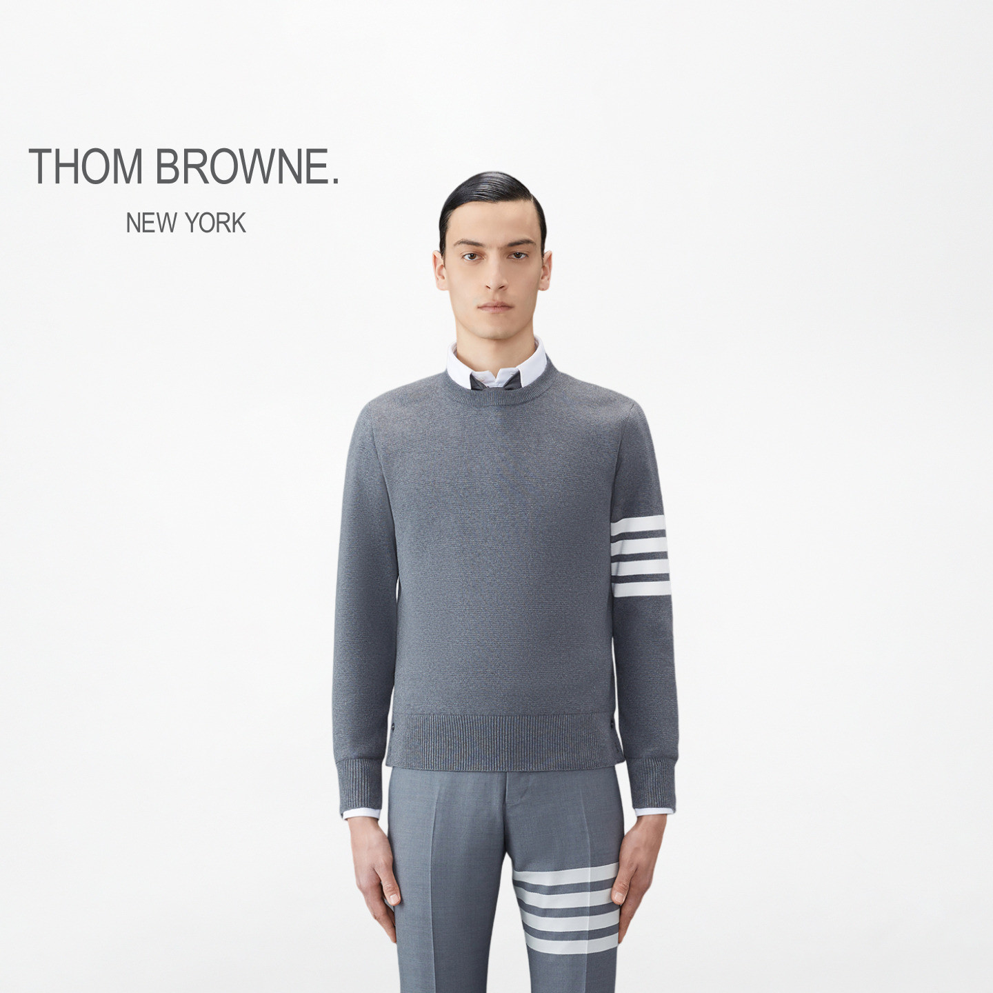 1h可退 香港直邮Thom Browne 汤姆 布朗 男士 毛衣 grey灰色 舒适