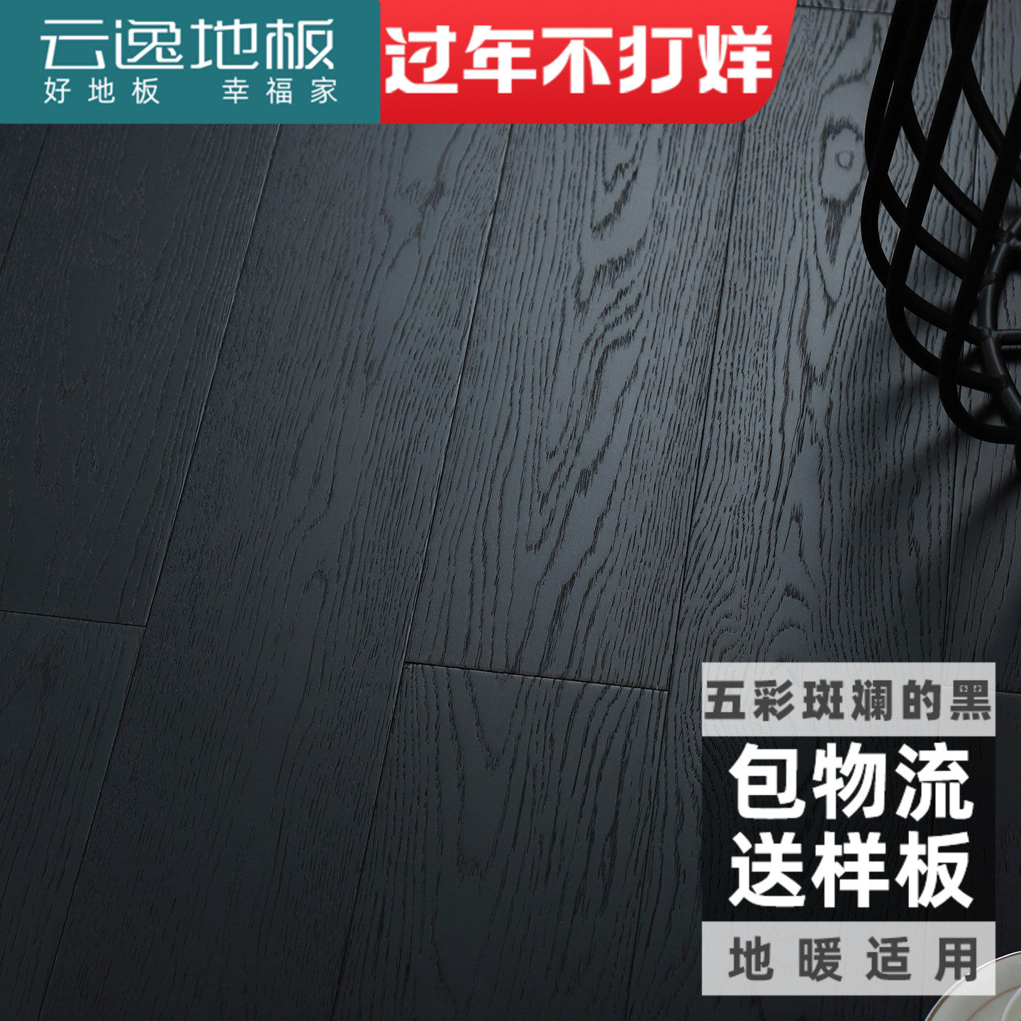 云逸木地板橡木深色家用三层大板黑色实木复合地板地暖ENF设计师