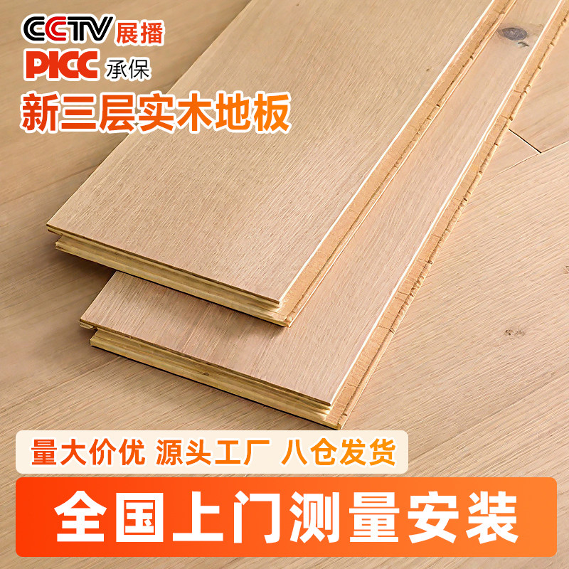 奶油风新三层实木复合地板卧室家用ENF级环保防水耐磨地暖包安装