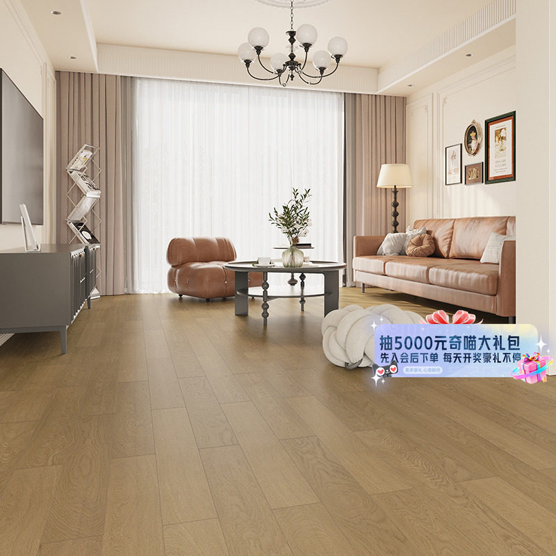 现代简约风纯实木表皮橡木地暖三层实木复合地板家用厂家直销15mm