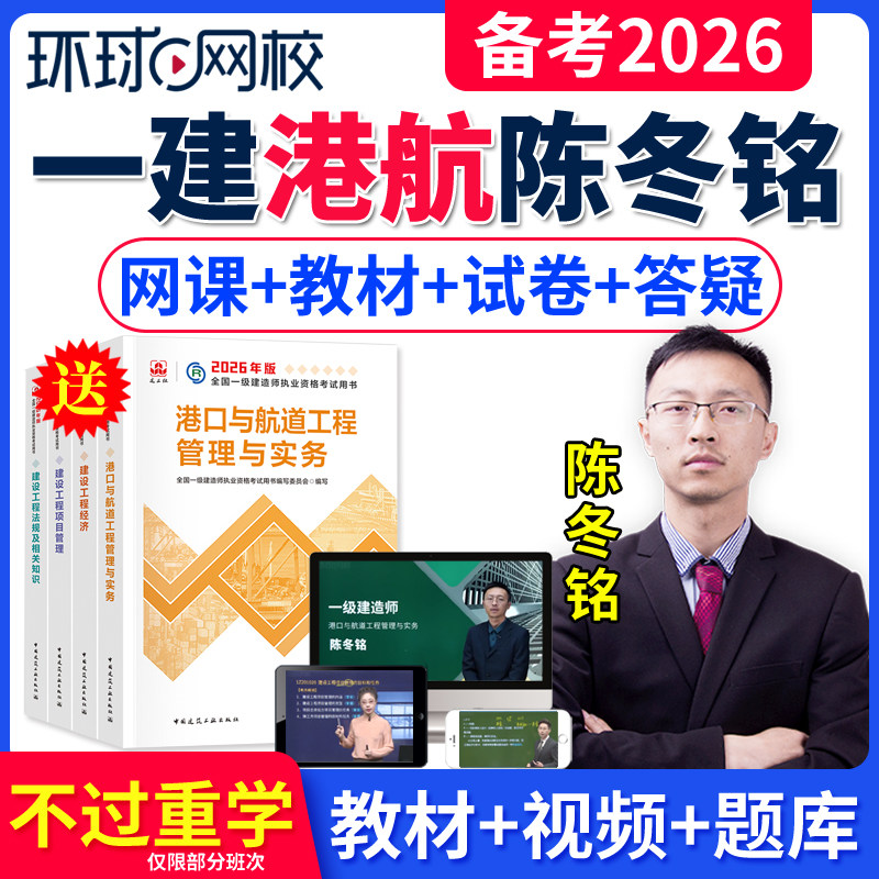 2026年环球网校一建港口与航道陈冬铭讲义一级建造师港口与航道工程管理与实务实物教材视频课件网络课程一建历年真题试卷刷题题库