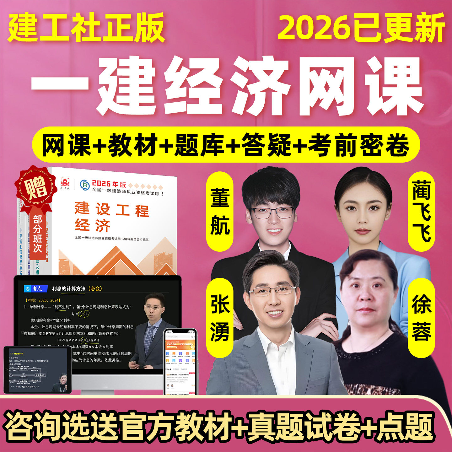 2026年徐蓉一建经济网课视频张湧一级建造师建设工程经济董航蔺飞飞官方教材精讲课程课件电子版讲义历年真题习题考试题库学习张勇