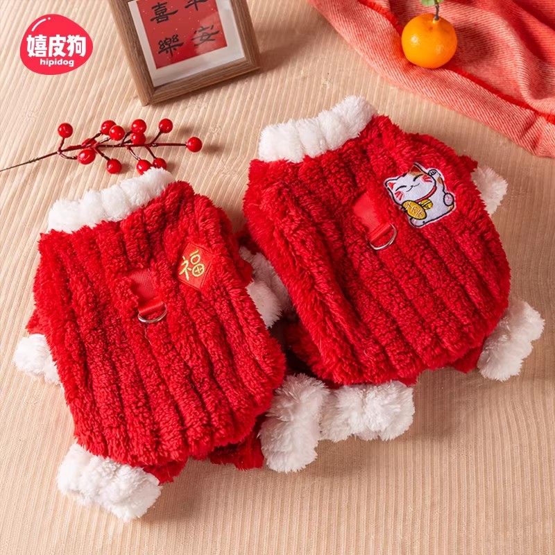 过年喜庆小狗狗衣服秋冬装宠物冬季猫咪小型犬泰迪比熊冬天拜年服