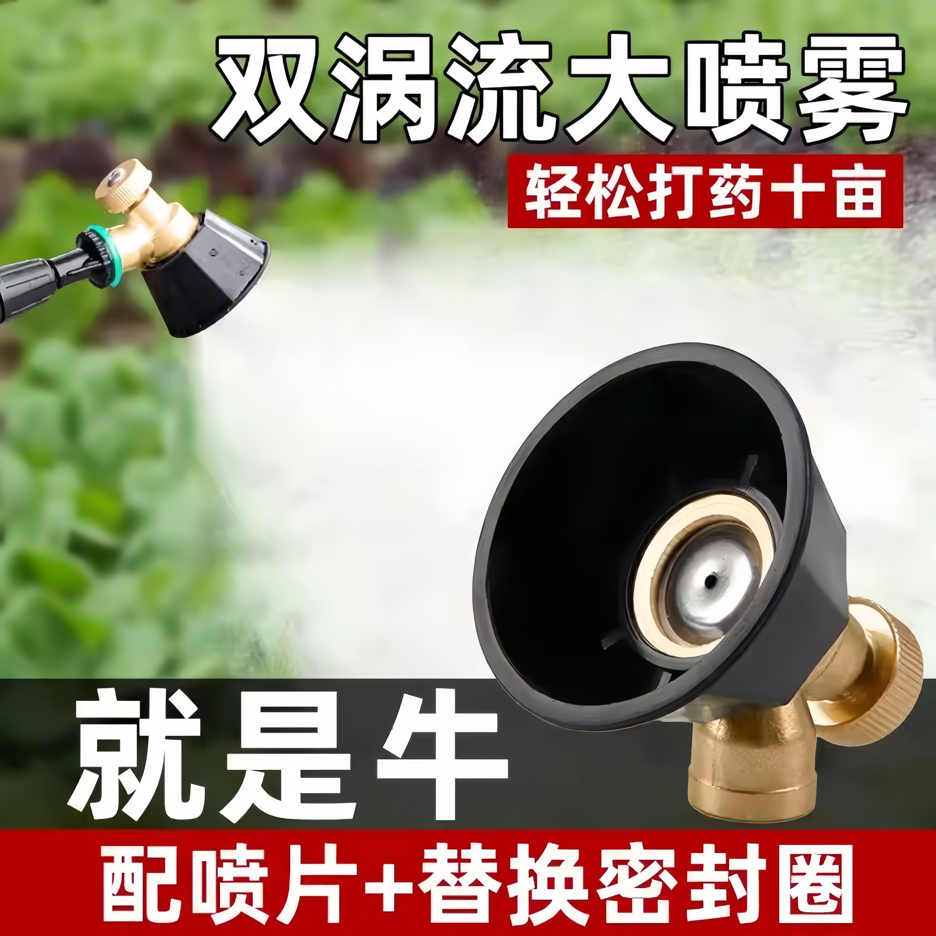 新型打药喷头农用黑旋风雾化可调节高压水枪喷头防风机动超细喷雾